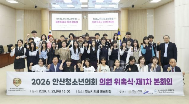 청소년 의원들은 앞으로 1년 동안 지역사회 문제 해결을 위한 정책 제안, 학생 의견 수렴 활동, 사회참여 프로젝트 등 다양한 자치활동에 참여하며 안산 청소년의 목소리를 지역사회에 전달할 예정이다.