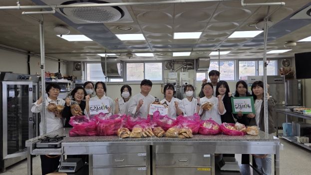 공주생명과학고등학교 식품가공과 학생들이 만든 카스텔라, 슈크림, 단팥빵 등으로 구성된 70꾸러미를 마련해 각 가정에 전달했다.