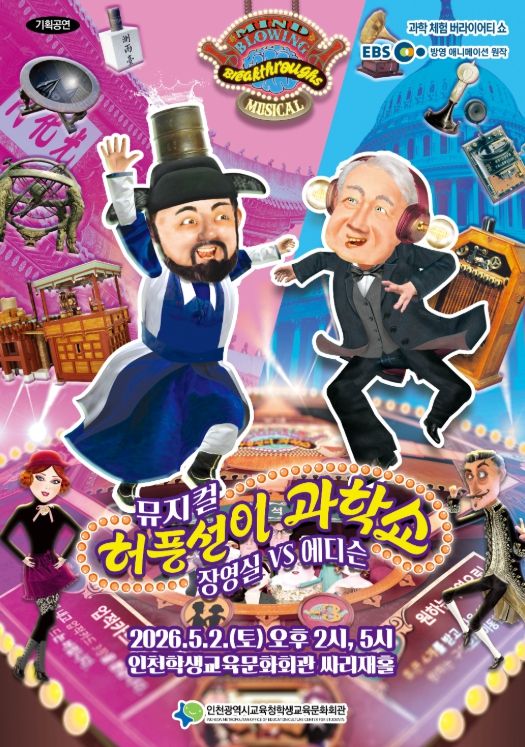 한방통신사 신유철기자 기자 | 인천광역시교육청학생교육문화회관은 5월 2일 대공연장 싸리재홀에서, 과학 체험 버라이어티 쇼 ‘허풍선이 과학쇼: 장영실 VS 에디슨’ 기획 공연을 개최한다.