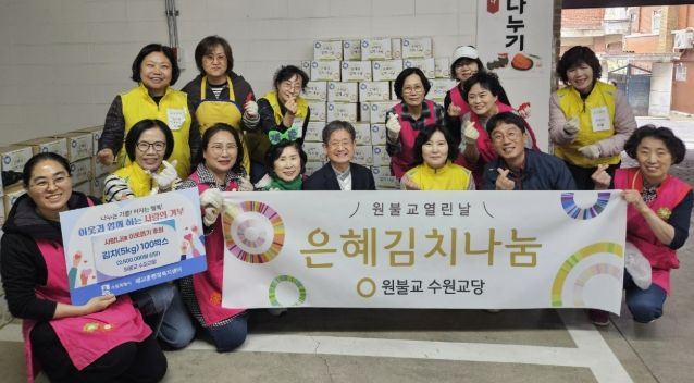 이날 후원된 김치는 원불교 수원교당 관계자들이 이른 아침부터 신선한 재료를 손질하고 정성을 다해 직접 담근 것으로, 포장 작업까지 마친 뒤 매교동 행정복지센터에 전달됐다.