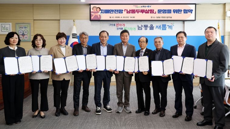 남동구 보건소는 지난 22일 구청장 집무실에서 ‘남동 두루살핌 업무 협약식’을 열고, 치매 환자 실종 예방과 치매 친화적 환경 조성을 위한 지역안전망 구축에 나섰다고 24일 밝혔다.