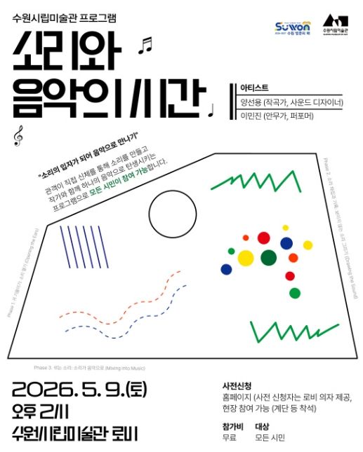 한방통신사 신유철기자 기자 | 경기도 수원시립미술관은 을 맞아 소리를 주제로 한 음악 프로그램 '소리와 음악의 시간'을 5월 9일 개최하며 참여자를 모집한다.