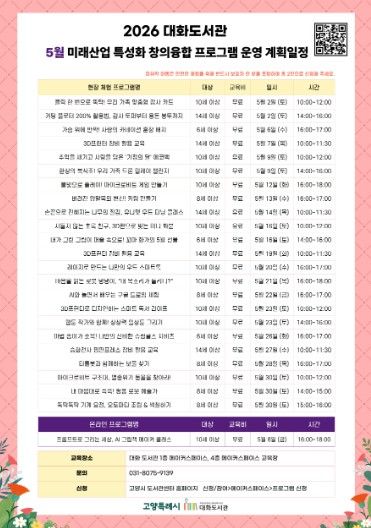 AI 체험 프로그램으로는 △프롬프트로 그리는 세상, AI 그림책 메이커 클래스 (5월 8일) △AI와 놀면서 배우는 구글 드로잉 체험 (5월 22일) 등이 마련됐다.
