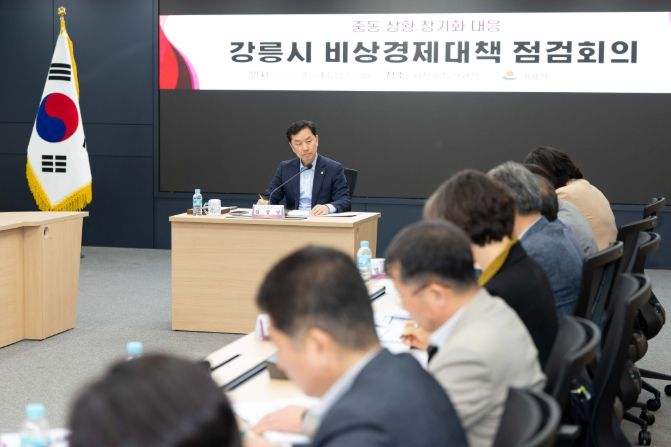 한방통신사 양호선기자 기자 | 강릉시는 24일 시청 8층 상황실에서 중동상황 장기화에 따른 유가 상승 및 원자재 수급 차질 등 지역경제 전반에 미치는 영향을 점검하고 선제적 대응 방안을 마련하기 위해 비상경제대책 점검회의를 개최했다.