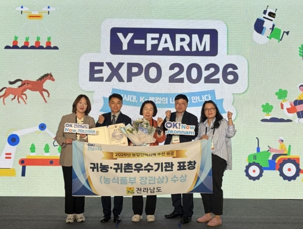 한방통신사 신다은기자 기자 | 전라남도는 24일 수원컨벤션센터에서 열린 ‘2026 와이팜 엑스포(Y-FARM EXPO)’에서 농림축산식품부의 농업인력육성시책 추진 유공자 표창에서 귀농어귀촌 우수시책 추진기관으로 선정돼 장관상을 받았다.
