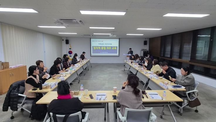 교육은 단체원들이 참여하기 쉬운 정기회의 일정에 맞춰 진행됐으며, 각 단체원의 역할과 지위에 대한 설명을 시작으로 본격적인 정치적 중립 의무 교육이 이어졌다.