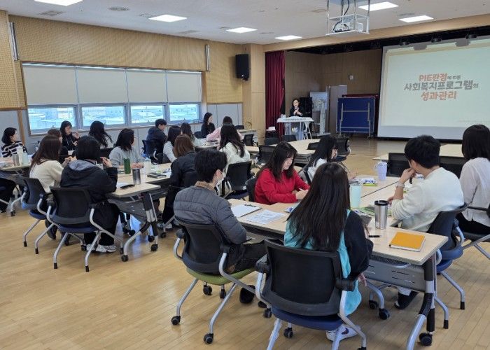 교육은 고이경 한국복지경제연구원 책임연구원을 초청해 ‘환경 속의 인간(PIE) 관점에 따른 사회복지 프로그램 성과관리’를 주제로 진행됐다.