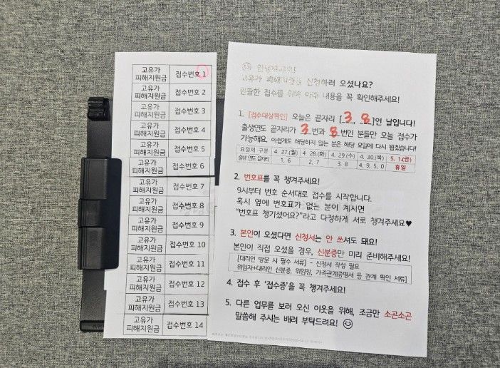 이 편지에는 대기표와 신분증을 잘 챙겼는지, 오늘 신청 번호는 몇 번인지 세심하게 확인해주는 체크리스트와 함께, 대기표를 챙기지 못한 이웃을 서로 챙겨주고 다른 용무로 행정복지센터를 방문한 이웃들을 배려하자는 따뜻한 당부가 담겨 있었다.
