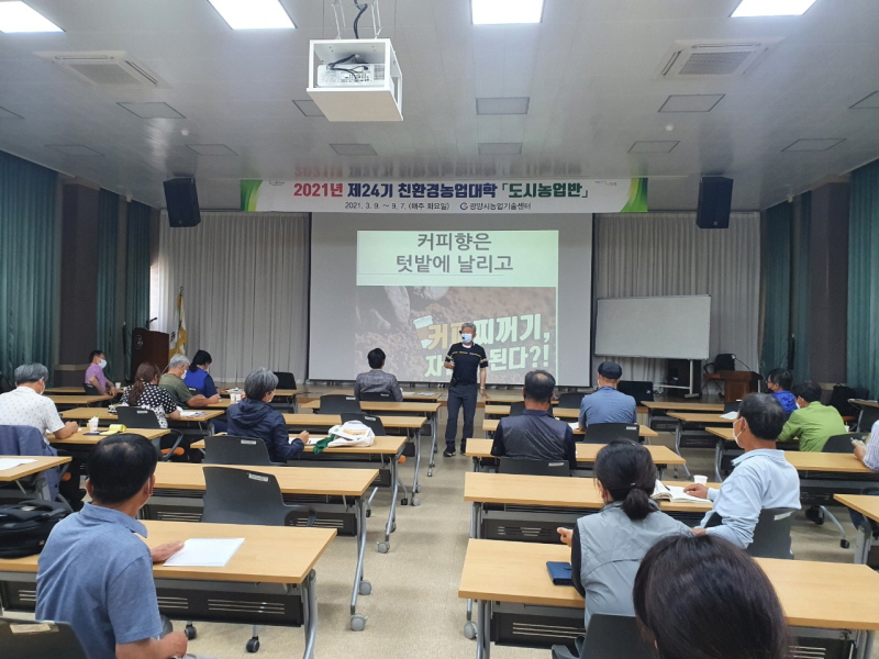 광양시는 오는 15일 농업기술센터 시험포장 농업인교육관에서 도시농업전문가의 꿈을 목표로 운영하는 제24기 친환경농업대학 도시농업반 15회차 교육을 실시한다.
