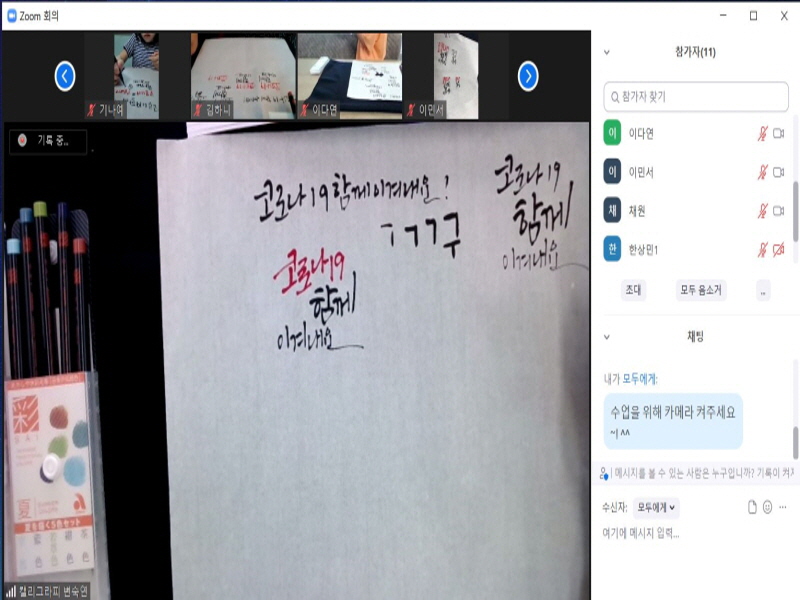 (사)연천군자원봉사센터 김문호 센터장은 “비대면 온라인으로 각 가정에서 전문교육에 참여하는 자원봉사자의 열정을 응원하며, 캘리그라피 작품 속 담긴 자원봉사자의 작은 메시지가 어려운 상황에 큰 힘이 됐으면 한다.”라고 전했다.