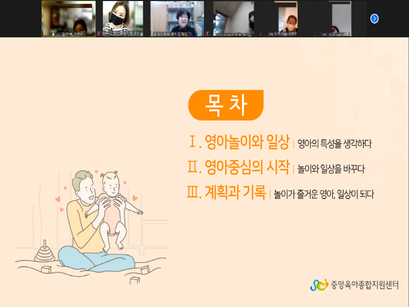 ‘놀면서 자란다’ 교육은 영아(0-2세) 보육과정과 유아(3-5세) 보육과정으로 나뉘어 있으며, 교육수요자의 지속적인 요구를 반영해, 영아(0-2세) 보육과정을 먼저 진행했다. 강의는 정혜원 경기북부육아종합지원센터 센터장이 맡아, 영유아중심·놀이중심의 보육이 보육현장에 잘 안착 할 수 있도록 영아 놀이에 대한 이해와 교사의 지원에 대해 강의했다.