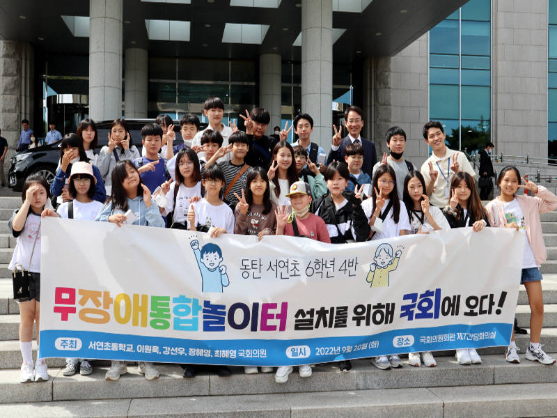 이번 정책전달식은 국회의원회관 제7 간담회실에서 서연초등학교 6학년 4반 학생들과 더불어민주당 이원욱(경기 화성시 을), 강선우(서울 강서구 갑), 최혜영 의원(비례대표), 정의당 장혜영(비례대표) 의원의 주최로 개최되었고 서연초 학생의 무장애 통합놀이터 설치 제안 및 제안서 전달 무장애 통합놀이터 설치 제안을 위한 프로젝트 활동 과정 발표 국회의원 – 학생 간 질의 응답의 순서로 진행되었다.