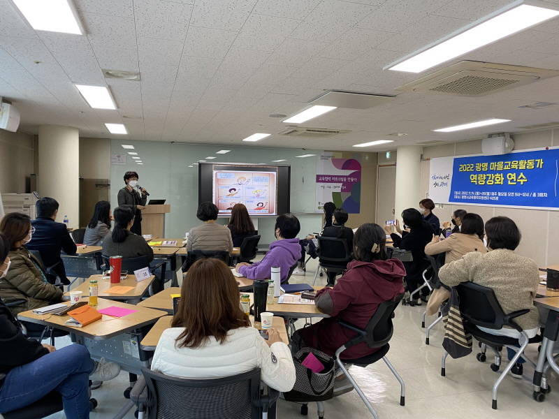 광명시(시장 박승원)는 지난 14일부터 28일까지 3주간 광명시 교육협력지원센터에서 지난 9월 광명 마을교육자원 모집공고를 통해 선발된 마을교육활동가를 대상으로 마을교육활동가 역량강화연수를 실시했다.