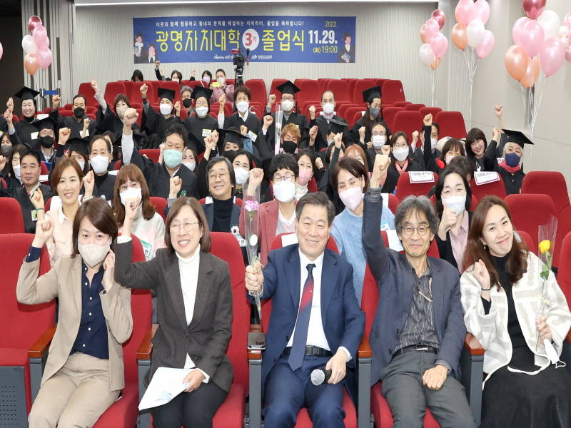 광명시(시장 박승원)는 지난 29일 광명시 평생학습원에서 박승원 광명시장을 비롯해 제3기 수료자와 관계자 등 70여 명이 참석한 가운데 ‘2022년도 광명자치대학 졸업식’을 개최했다.