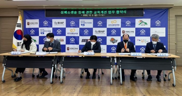 부천시는 지난 2일 경기도부천교육지원청, 부천대학교, 대한심폐소생협회, 부천보건교사회와 학교 심폐소생술 교육 확대를 위한 ‘심폐소생술 등 응급처치 교육 개선 업무협약’을 체결했다.