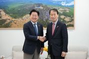 한방통신사 신유철기자 기자 | 오영훈 제주특별자치도지사는 13일 도청 집무실에서 권오을 국가보훈부 장관과 면담을 갖고, 제주 4·3 관련 보훈 현안과 제주대학교병원 준보훈병원 지정 문제를 중심으로 지역 보훈정책 주요 사안을 논의했다. 이번 면담은 권 장관의 제주 방문에 따라 마련됐으며, 양측은 제주지역 보훈정책 발전을 위한 협력 방안에 대해 의견을 나눴다. 이 자리에서 오영훈 지사는 제주 4·3 당시 민간인 학살에 책임이 있는 박진경의 국가유공자 등록 취소 문제를 우선 거론하며, 보훈심사위원회의 조속한 결정을 촉구했다. 오 지사는 “국가보훈부가 박진경 국가유공자 등록 취소 방침을 밝힌 데 대해 유족과 도민의 기대가 매우 크다”며 “관련 법률에 의거해 심사위원회를 조속히 개최하고, 등록 취소가 명명백백하게 이뤄져야 한다”고 강조했다. 아울러 “4·3 추념식 전에 결정이 이뤄질 수 있도록 속도를 내달라는 것이 유족과 도민의 요구”라고 덧붙였다. 권오을 장관은 현재 진행 상황을 설명하며, 절차에 따라 처리하겠다는 입장을 밝혔다. 권 장관은 “국가유공자 예우에 관한 법률에 따라