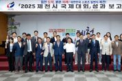 한방통신사 권영분기자 기자 | 제천시는 지난 1일 제천시청 5층 청풍호실에서 '2025년 제천시 국제대회'성과보고회를 개최했다. 보고회에는 김창규 제천시장, 박영기 제천시의회 의장, 김경석 대한롤러스포츠연맹 회장(이상 공동조직위원장), 장재돈 대한체조협회 고문과 안성국 제천시체육회장(집행위원장), 오재성 제천시체조협회장, 최호열 제천시롤러스포츠연맹회장(이상 공동 사무총장) 및 유관기관, 단체장 3명과 종목단체 임원 및 회원 50여 명이 참석했다. 이날 보고회는 올해 제천시에서 열린 국제대회인 '2025 기계체조 아시아선수권대회(6.1.~6.15.)'와 '2025 아시아 롤러스케이팅 선수권대회(7.19.~7.30.)'의 성공 개최를 기념하고, 대회 관계자들의 노고를 격려하며 성과를 공유하는 자리였다. 행사는 유공 기관·단체에 대한 감사패 수여와 유공자 표창 순으로 진행됐다. 제천시장 감사패는 대회 유치와 개최를 주관한 ▲대한롤러스포츠연맹(회장 김경석) ▲제천시롤러스포츠연맹(회장 최호열) ▲대한체조협회(공석) ▲제천시체조협회(회장 오재성)에 수여됐다. 또한, 두 대회를 실질적으로 준비하고 집행한 ▲제천시체육회(회장