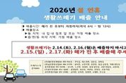 한방통신사 권영분기자 기자 | 충주시는 2026년 설 명절 연휴 동안 쾌적한 도심 환경을 유지하고 시민과 귀성객의 생활 쓰레기 배출 불편을 최소화하기 위해 설 연휴 쓰레기 관리 종합대책을 추진한다고 10일 밝혔다. 연휴 전에는 불법투기 단속반을 운영해 다중이용시설 및 상습 불법투기 지역을 중심으로 단속을 강화하고, 가로 청소를 철저히 해 깨끗한 도시환경을 조성한다. 또한 환경공단과 합동으로 명절 선물세트류의 과대포장 및 분리배출 표시 위반 여부를 점검해 불필요한 폐기물 발생을 억제하고 재활용 자원의 올바른 분리배출을 유도할 계획이다. 생활쓰레기 수거는 2월 15일(일)과 2월 17일(화)에 업무가 중단된다. 시는 관리사무소, 이·통장 마을 방송 등을 통해 사전에 휴무일을 안내하고, 시민들에게 2월 14일과 2월 16일 양일간 생활쓰레기 배출 자제를 홍보할 예정이다. 연휴 기간 동안 자원순환과는 민원대응반을 운영해 생활쓰레기 관련 민원에 신속히 대응할 계획이다.. 김동철 자원순환과장은 “시민과 귀성객 모두가 깨끗한 환경에서 설 명절을 보낼 수 있도록 쓰레기 관리 종합대책을 차