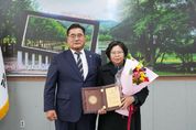 한방통신사 권영분기자 기자 | 충북 괴산군의회 송영순 부의장이 31일 괴산군의회(의장 김낙영) 종무식에서 대한민국시군자치구의회의장협의회가 수여하는 대한민국지방의정봉사상을 수상했다. 이 상은 의정활동을 통해 지방의정 발전과 주민 화합을 위해 헌신적으로 봉사하는 등 지역사회 발전에 기여한 지방의원에게 수여한다. 송영순 부의장은 한 해 동안 지역을 위해 정책 및 사업 추진을 비롯한 의정활동과 자치단체의 정책 방향 감시 및 견제 역할에 충실히 수행하고 의회 발전과 군민의 복리 증진을 위해 노력한 공로를 인정받아 수상했다. 송 부의장은 “주민을 대표해 성실한 의정활동을 하는 것은 지방의회 의원의 존재 이유이며 본질적 의무라고 생각 해 왔다”며, “4만여 괴산 군민께서 주신 상으로 알고 군민들께서 더욱 체감할 수 있는 정책을 만들기위해 지속적으로 노력하고 새해에도 군민 목소리에 귀 기울이고, 오직 군민을 생각하는 쉼 없는 의정활동으로 보답 하겠다”고 말했다. 한편 충청북도의회(훈격 도의장)가 선정한 지방의회 우수공무원 분야에선 괴산군의회 이방환 주무관이 수상의 영예를 안았다. [뉴스출처 : 괴산군의회]