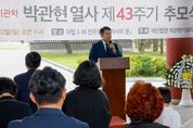 한방통신사 김성의 기자 | 이정선 광주시교육감이 12일 국립5·18민주묘지 ‘역사의 문’ 앞에서 열린 ‘민주화의 새벽기관차 박관현 열사 제43주기 추모식’에 참석했다. 이날 추모식에는 이정선 교육감을 비롯해, 강기정 광주광역시장, 윤목현 5·18기념재단 이사장, 이개호 영광군 국회의원, 유족 및 시민사회단체 관계자 등이 참여해 열사의 숭고한 뜻을 기렸다. 이정선 교육감은 “박관현 열사의 숭고한 정신을 잊지 않고 기억하는 길은 5·18 정신을 미래 세대에 계승하고 발전시키는 교육이다”며, “오월 정신을 전국으로, 세계로 알리고 확산하여 민주주의와 인권, 평화의 가치를 교육 현장에서 실천해 나가겠다”고 밝혔다. [뉴스출처 : 광주시교육청]