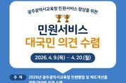 한방통신사 김성의 기자 | 광주시교육청은 민원서비스 품질 향상을 위해 오는 9~20일 국민권익위원회 온라인 정책참여 플랫폼 ‘국민생각함’과 ‘시교육청 누리집’을 통해 대국민 의견을 수렴한다. 이번 의견 수렴은 국민의 다양한 목소리를 민원행정과 제도개선에 반영해 광주교육 민원서비스 만족도를 높이기 위해 추진됐다. 의견 수렴 내용은 ▲민원서비스 향상을 위한 제도 개선 ▲민원실 편의시설 및 환경 개선 ▲기타 민원서비스 이용 시 불편사항 및 개선 아이디어 등이다. 지난해 실시한 ‘2025년 민원서비스 개선 대국민 의견수렴’에는 595명의 국민이 참여해 다양한 의견을 제시했다. 시교육청은 올해도 다양한 의견을 듣기 위해 참여자 중 20명을 추첨해 모바일 음료 교환권을 증정하는 이벤트를 진행한다. 박준수 행정국장은 “시민 눈높이에 맞는 민원서비스를 제공하기 위해서는 현장 의견을 듣고 정책에 반영하는 것이 무엇보다 중요하다”며 “수요자 중심의 민원행정과 제도개선을 통해 신뢰받는 교육행정이 실현되도록 최선을 다하겠다”고 말했다. [뉴스출처 : 광주광역시교육청]