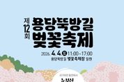 한방통신사 신다은기자 기자 | 순천시 삼산동행정복지센터는 4월 4일 동천 벚꽃길 일대(용당동 705)에서 ‘국가하천 동천에서 눈부신 행복의 순간 함께해요, 우리’라는 주제로 제12회 용당뚝방길 벚꽃축제를 개최한다고 밝혔다. 이번 축제는 오전 11시부터 오후 5시까지 진행된다. K-pop 댄스, 저글링, 태권도 군무 등 다채로운 공연부터 달고나, 페이스페인팅, 풍선아트, 헤어핀 만들기, 쿠키 아이싱, 벚꽃 사진관 부스 등 남녀노소 누구나 함께 어울려 즐길 수 있는 다양한 체험 프로그램이 준비돼 있다. 삼산동 직능단체에서 운영하는 음식 부스에서는 정성 가득한 음식도 맛볼 수 있다. 특히, 지난 축제와 달리 올해는 아이들이 마음껏 뛰어놀 수 있는 에어바운스가 설치되고, 삼산동 대표 캐릭터인 ‘꾸비’ 대형 공기 조형물 2개가 행사장에 배치돼 방문객들을 더욱 친근하게 맞이할 예정이다. 관내 유관기관도 함께 힘을 보탠다. 순천경찰서에서는 실종아동 예방을 위해 사전지문 미등록 아동을 대상으로 한 현장 등록 부스를 운영할 계획이며, 순천시 보건소에서도 만 60세 이상을 대상으로 치매 예방을 위한 치