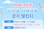 한방통신사 신다은기자 기자 | 강진군 보건소(치매안심센터)가 치매예방에 대한 관심을 높이고 건강 생활 실천을 독려하기 위해 오는 4월 6일부터 19일까지 14일간 '한마음 치매극복 걷기챌린지'를 운영한다. 이번 행사는 군민이 한마음으로 치매 극복을 기원하고 치매에 대한 부정적인 인식을 개선해 치매 친화적 지역사회 환경 조성하기 위해 마련됐다. 챌린지는 모바일 걷기 플랫폼인 ‘워크온’ 앱을 통해 진행되며 강진군민이라면 누구나 참여할 수 있다. 참여방법은 스마트폰 앱스토어에 '워크온' 설치 및 회원가입 후 ‘강진군 치매 극복 걷기’ 챌린지 참여하기 버튼을 누른 후 행사 기간 내에 자유롭게 걷기를 실천하면 된다. 이번 챌린지 목표는 14일 동안 98,000보 달성하는 것이다. 단 무리한 운동을 방지하기 위해 걸음 수는 1일 최대 8,000보까지만 인정된다. 목표 걸음 수를 달성한 군민 중 선착순 150명에게는 소정의 기념품이 증정된다. 대상자는 4월 21일부터 4월 30일까지 강진군 치매안심센터를 직접 방문하여 기념품을 수령하면 된다. 강진군 치매안심센터 관계자는