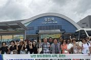 한방통신사 신다은기자 기자 | 강진역 개통 후 처음으로 강진을 찾은 부산 관광객들을 환영하는 행사가 열렸다. 강진군문화관광재단(대표이사 김기태)은 목포보성선 강진역을 통해 처음으로 방문한 부산지역 여행업 종사자 및 철도 우수고객 20여명에 대한 환영식을 지난달 27일 개최했다. 이날 강진역에서 열린 환영식에 이어 철도 여행을 중심으로 사의재 등 강진 주요 관광지 탐방, 공연 관람, 지역 음식 체험 등을 연계한 복합문화 프로그램으로 진행됐다. 이를 통해 강진만이 지닌 풍부한 자연경관과 역사·문화 자원을 효과적으로 소개하며, 강진 관광 브랜드의 매력을 널리 알리는 계기를 마련했다. 특히, 강진 고유의 콘텐츠 ‘장사의 법칙’ 창작 뮤지컬을 관람, 참가자들에게 색다른 즐거움을 선사하고 철도를 통한 강진 관광의 방법을 제시했다. 부산에서 온 이광순 씨(75)는 남도해양관광열차의 첫 강진 방문을 기념해 환영 꽃다발을 받은 뒤 “목포~보성선을 이용해 강진을 여행할 수 있어 뜻 깊었고, 강진의 매력에 빠질 수 있는 다양한 문화관광프로그램을 제공해 준 강진군문화관광재단에 깊이 감사드린다”고 말했다. 이