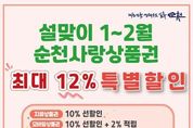 한방통신사 신다은기자 기자 | 순천시는 시민들의 장바구니 부담을 덜고 지역 내 소비를 촉진하기 위해 1월부터 추진 중인 순천사랑상품권 할인행사를 설 명절을 포함해 2월 말까지 지속 운영한다고 밝혔다. 시에 따르면 2026년 1월부터 진행 중인 순천사랑상품권 할인행사에 따라 지류형은 10% 선할인, 모바일형은 10% 선할인에 사용금액의 2%를 후캐시백으로 제공해 총 12% 혜택을 받을 수 있다. 아울러 순천시는 2025년에 지급한 민생회복지원금의 사용기한이 2026년 2월 28일까지임을 시민들에게 다시 한번 안내했다. 해당 지원금은 지역경제 회복을 위해 한시적으로 지급된 것으로, 기한 내 사용하지 않은 민생회복지원금은 이후 사용할 수 없게 된다. 민생회복지원금과 현재 진행 중인 상품권 할인 혜택을 함께 활용할 경우 설 명절 가계 부담을 줄이고 지역상권 활성화 효과는 더욱 클 것으로 기대된다. 시 관계자는 “설 명절 증가하는 생활비 부담을 완화하고, 전통시장과 골목상권의 상권 활성화를 위해 할인 행사를 진행하고 있다”며 “민생회복지원금을 사용기한인 2월 28일까지 꼭 사용해 지역경제 회복에