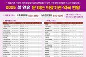 한방통신사 신다은기자 기자 | 고흥군은 설 연휴인 오는 2월 14일부터 18일까지 5일간 응급환자 발생에 대비하고 의료 공백을 최소화하기 위해 비상진료체계를 가동한다고 밝혔다. 이번 비상진료체계는 연휴 기간 중 의료 이용 불편을 해소하고 응급 상황에 신속히 대응하기 위한 조치로, 응급의료기관 2개소, 보건기관 14개소, 의료기관 34개소, 약국 24개소와 협력해 운영한다. 또한, 보건소는 상황근무반을 편성해 ▲문 여는 의료기관 및 약국 운영 현황 점검 ▲감염병 발생 점검 ▲집단환자 발생 의심 사례 대응 등 연휴 기간 감염병 대응을 위한 비상방역체계도 병행할 계획이다. 보건소 관계자는 “설 연휴 동안 군민들이 안전하고 건강하게 명절을 보낼 수 있도록 비상진료체계를 철저히 운영하겠다”며 “주민들께서는 응급 상황 시 119를 이용하고, 경증 환자는 문 여는 의료기관과 약국을 적극 활용해 달라”고 당부했다. 한편, 설 연휴 기간 진료가 가능한 의료기관과 약국 정보는 고흥군보건소 누리집이나 응급의료포털에서 확인할 수 있으며, 고흥군 보건소로 문의하면 자세히 안내받을 수 있다. [뉴스출처 : 전남 고흥군]