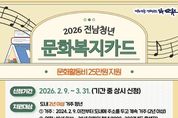 한방통신사 신다은기자 기자 | 순천시는 청년들의 문화생활 향유 및 자기계발 활동을 지원하기 위해 2026년 전남청년 문화복지카드 지원사업 대상자를 오는 3월 31일까지 모집한다. 청년 문화복지카드는 공연관람, 학원수강, 도서구입 등 문화복지비를 1인당 연 25만 원 지원해 주는 사업이다. 지원 대상은 현재 주민등록상 주소지가 순천시이면서 2024년 2월 9일 이전부터 전남 도내에 주소를 두고 2년 이상 계속 거주하는 19~28세(1998~2007년생) 청년이다. 지난해 지원금을 받은 대상자도 올해 다시 신청해야 한다. 다만, 복지포인트를 지급받는 공공기관 근무자, 학교 밖 청소년 교육 수당 지급 대상자, 전라남도 여성농어업인 행복바우처 대상자는 제외된다. 신청 기간은 오는 3월 31일까지이며, 광주은행 누리집을 통해 온라인으로 신청하거나 주민등록 주소지 관할 읍면동 행정복지센터를 방문해 신청하면 된다. 문화복지카드 대상자 선정 후 지원금은 체크카드 포인트로 지급되며, 기존 문화복지카드 발급자는 소지하고 있는 카드로 자동 충전된다. 올해 신규 선정자는 광주은행에서
