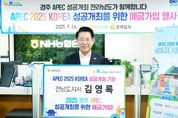 한방통신사 신다은기자 기자 | 김영록 전라남도지사는 26일 APEC 정상회의 성공적 개최를 기원하고 영호남 상생협력을 위해 ‘APEC 성공 기원 특별예금’ 가입 릴레이 캠페인에 참여했다. 이번 특별예금은 APEC 정상회의 성공을 응원하는 전 국민 참여형 금융상품으로, 가입 기간은 1년이다. 1인당 100만 원 이상 3천만 원 이내에서 가입할 수 있다. 김영록 지사는 이날 NH농협은행 전남도청지점을 방문해 예금에 가입하고, “APEC 정상회의의 성공적 개최를 진심으로 응원한다”며 “앞으로도 다양한 분야에서 영호남 상생협력을 적극 추진하겠다”고 말했다. 김영록 지사의 예금 가입은 개최지인 경상북도를 제외한 전국 광역지자체장 최초로, 타 지자체장들의 가입 릴레이 참여 분위기를 조성하는 데 기여할 것으로 기대된다. [뉴스출처 : 전라남도]
