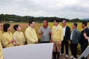 한방통신사 신다은기자 기자 | 보성군은 26일 최근 이어진 고온·다습한 기후로 벼 깨씨무늬병 발생 면적이 급증함에 따라 긴급 대응에 나섰다. 이날 김철우 보성군수와 김영록 전라남도지사, 보성군의회 김경열 의장, 김행란 전라남도농업기술원장, 농협경제지주 전남본부 김성모 부본부장, 문병완 보성농협조합장과 관내 조합장 등은 미력면 피해 현장을 직접 살피고 지역 농업인들을 만나 애로사항을 청취하고 해결 방안을 모색했다. 보성군농업기술센터 조사 결과, 2025년 보성군 벼 깨씨무늬병 발생 면적은 985㏊로 지난해(259㏊)보다 약 3.8배 증가한 것으로 나타났다. ‘깨씨무늬병’은 잎에 갈색 반점을 형성하고 점차 이삭까지 번져 등숙률을 떨어뜨리며 수량을 감소시키는 병해로, 수확기를 앞둔 농가에 심각한 위협이 되고 있다. 전문가들은 올해 확산 원인으로 평년보다 길었던 고온기와 지속적인 지력 소모 등을 지목하고 있다. 이에 보성군은 ▲월 6회 정기조사, ▲중앙·지방 합동 예찰 3회, ▲수시 예찰, ▲깨씨무늬병 공동방제 2,371㏊ 추진, ▲농작물 재해 인정 건의 등 종합 대응책을 신속히 가동하고