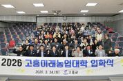 한방통신사 신다은기자 기자 | 고흥군은 지난 24일 농업기술센터 대교육장에서 2026학년도 고흥미래농업대학 입학식을 개최하고, 지역 농업의 미래를 이끌 전문농업경영인 양성을 위한 본격적인 교육과정 운영에 들어갔다. 입학식은 국민의례, 신입생 대표 선서, 인사말, 기념 촬영, 오리엔테이션 순으로 진행됐다. 올해 고흥미래농업대학은 고흥군 전략작물 중심의 전문교육 강화 기조에 따라 ‘복숭아반’과 ‘양념채소반’으로 운영된다. 교육은 3월부터 10월까지 진행되며, 작물 재배 기술을 비롯해 병해충 관리, 토양관리, 농업경영, 마케팅, 디지털 문해력, 농기계 교육, 농작업 안전교육 등 현장 중심의 실용교육으로 편성됐다. 특히 이번 교육과정은 단순한 재배 기술 전달을 넘어 고품질·고소득 구조 전환형 교육에 중점을 두었다. 복숭아반은 품종 선택부터 시기별 과원관리, 병해충 방제, 수확 후 저장·유통관리 등을 중점적으로 다루며, 양념채소반은 고추·마늘·생강의 재배 기술과 토양관리, 병해충 관리, 수확 후 저장관리 등 품목별 맞춤형 교육으로 진행된다. 또한 공통 과정에는 토양·퇴비·미생물 이해