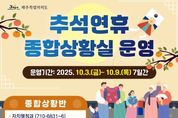 한방통신사 신유철기자 기자 | 제주특별자치도는 2일 오영훈 지사 주재로 ‘2025년 추석 연휴 종합대책 보고회’를 열고 ‘모두에게 닿는 민생회복, 모두가 행복한 추석명절’을 슬로건으로 분야별 세부 추진계획을 점검했다. 이날 보고회에는 행정부지사, 정무부지사를 비롯해 안전건강실장, 특별자치행정국장, 행정시 부시장 등 30여 명이 참석했다. 제주도는 3일부터 9일까지 특별자치행정국장을 총괄로, 총 7개반 2,157명을 투입해 종합상황실을 운영한다. 도 7개반 555명, 제주시 7개반 875명, 서귀포시 9개반 727명이 참여하며, 하루 평균 308명이 현장에서 비상근무를 선다. 제주 120 만덕콜센터와 당직 근무자가 도민과 관광객 불편신고를 접수한다. 9월 23일 수립해 추진 중인 추석연휴 종합대책은 ▲민생경제 안정 ▲도민안전 확보 ▲교통·관광 편의 ▲도민불편 해소 ▲나눔실천 및 도민화합 등 5개 분야로 구성됐다. 물가안정 및 소비촉진을 위해 물가대책 종합상황실을 꾸려 추석 성수품 가격을 특별 관리하고 있다. 장바구니 물가조사를 주 1회에서 주 2회로 늘리고, ‘탐나는전’ 인센티브 13%