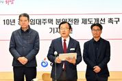 한방통신사 신유철기자 기자 | 이현재 하남시장은 17일 “10년 공공임대아파트에 거주하는 무주택 서민들의 주거 안정을 위해 공공임대아파트의 분양전환가 산정기준을 5년 공공임대아파트와 동일한 수준으로 변화될 수 있도록 국토교통부에 제도 개선을 요청했다”고 밝혔다. 이현재 시장은 이날 시청 상황실에서 진행된 기자회견을 통해 “10년 공공임대아파트의 분양전환가 산정기준이 5년 공공임대아파트 보다 매우 불리하게 되어있어 무주택 서민들의 내 집 마련 꿈을 산산이 조각내고 있다”며 이같이 말했다. 문제의 핵심은 10년 임대와 5년 임대주택 간의 ‘분양전환가격 산정 방식’에 있다. 현재 10년 공공임대주택은 분양전환가격이 ‘현재 시세’인 감정평가금액을 넘지 못하도록만 되어 있다. 즉, 최근 몇 년간 폭등한 부동산 시세가 사실상 그대로 분양전환가격이 되는 구조다. 반면, 5년 공공임대주택은 ‘최초의 건설원가’와 ‘현재 시세(감정평가금액)’를 더한 뒤 2로 나눈(산술평균한) 금액으로 분양전환가격이 책정된다. 쉽게 말해, 5년 임대 입주자는 최초의 저렴했던 ‘원가’ 혜택을 절반이라도 받지만, 10년 임대 입주자는 그 혜택 없이