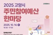 한방통신사 신유철기자 기자 | 고양특례시는 오는 10월 14일 오후 3시 30분, 일산호수공원 고양꽃전시관(북카페)에서 ‘2025년 고양특례시 주민참여예산 한마당’을 개최한다고 밝혔다. 주민참여예산제는 예산 과정에 시민이 직접 참여함으로써 지역의 주인 의식을 높이고 재정민주주의를 실현하는 중요한 제도다. 시는 지난해 7월부터 올해 6월 말까지 온오프라인을 통해 총 250건의 주민 제안사업을 접수받았다. 이후 소관 부서의 검토와 주민참여예산위원회의 심사를 거쳐 온라인 시민투표를 실시하고 그 결과를 이번 행사에서 공개할 예정이다. 현재 고양시청 누리집(홈페이지)에서는 2026년도 주민참여예산 제안사업에 대한 사전 온라인 시민투표(9.26.~10.8.)가 진행 중이다. 이번 행사에서는 2025년도 주민참여예산으로 반영돼 실제로 실행된 사업 중 우수 실행사례도 함께 소개된다. 주민참여예산의 의미를 시민들과 다시 공유하고, 향후 제도의 발전 방향을 함께 모색하는 자리가 될 예정이다. 행사에서 결정된 제안사업 우선순위는 오는 10월 중 ‘주민참여예산 조정협의회’심의를 거쳐 2026년도 고양시 예산