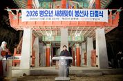 한방통신사 신유철기자 기자 | 진접읍 봉선사에서 2026년 희망 가득한 새해를 기원하는 제야의 종소리가 울려 퍼졌다. 남양주시의회(의장 조성대)는 31일 진접읍에 위치한 대한불교조계종 제25교구 봉선사(주지 호산스님)에서 열린‘2026년 봉선사 새해맞이 타종식’에 참석해 시민들과 함께 병오년(丙午年) 새해의 힘찬 출발을 함께했다. 봉선사가 주관한 이날 행사는 조성대 의장을 비롯해 이정애 부의장, 이경숙 복지환경위원장, 김지훈(국) 의원, 김동훈 의원, 이수련 의원, 김상수 의원, 손정자 의원 및 주광덕 남양주시장, 지역 국회의원, 봉선사 관계자 및 신도, 지역주민 등 300여명이 참석했다. 행사는 송년법회를 시작으로 △교구장 호산스님의 인사말씀 △새해 덕담 및 송년 인사 △발원문 △봉선사 대종 소개 △타종 순으로 진행됐으며, 한파로 인한 추운 날씨 가운데서도 타종식에 참석한 시의원들과 시민들은 덕담과 따뜻한 온기를 나누며 훈훈한 새해를 함께 맞이했다. 특히, 주요 내외빈의 타종 이후 일반 시민들도 함께 타종자로 참여하는 순서를 마련해 새해맞이 타종식의 의미를 더했다. 조성대 의장은 “