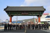 한방통신사 신태공 기자 | 태안군이 태안읍 원도심의 도시재생과 역사성 회복을 위해 추진해 온 ‘태안읍 역사문화 거리 조성’의 1단계 사업을 성공적으로 마무리했다. 군은 지난 12일 동문리 일원에서 가세로 군수를 비롯한 군의원, 지역주민 등 200여 명과 함께 경이정로 도로 개설과 일주문의 준공을 기념하며 현판식을 개최했다. 이번 사업은 중앙로에서 경이정에 이르는 구간의 경관을 개선하기 위해 추진됐다. 2020년 도시계획시설 결정 고시 이후 토지 보상 등의 절차를 거쳐 2024년 5월 착공했으며, 약 1년 7개월 만에 도로를 개통했다. 도로 입구에 웅장하게 건립된 ‘일주문’은 태안읍성 동안문 등 인근 문화재와 조화를 이루는 전통 양식으로 설계됐다. 특히 군은 憬夷亭路(경이정로) 현판을 설치해 도로의 정체성을 담았으며 지역의 새로운 랜드마크가 되길 기대하고 있다. 군은 일주문에 ‘집착을 내려놓고 마음을 비운다’는 방하착(放下着)의 의미를 담았다. 방문객들이 문을 지나며 일상의 번잡함을 내려놓고 태안의 역사와 문화를 되새길 수 있도록 상징성을 부여했다. 아울러 기존 6m였던 경이정길의 도로