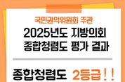 한방통신사 신태공 기자 | 서산시의회는 지난 23일 국민권익위원회(이하 국민권익위)가 발표한 ‘2025년 종합청렴도 평가’에서 2등급을 달성했다. 이번 평가는 매년 국민권익위가 전국 243개 광역·기초의회를 대상으로 △청렴체감도, △청렴노력도, △부패실태 3개 분야를 종합하여, 결과에 따라 지방의회별 청렴도 등급을 공개한다. 서산시의회는 전년도 대비 청렴체감도에서 한 단계 상승한 2등급, 청렴노력도는 3등급을 기록하며, 전국시의회 평균을 상회하는 성적으로 종합청렴도에서 2등급을 획득했다. 서산시의회는 그동안 청렴도 향상을 위해 △반부패 추진 계획 수립, △부패 유발요인 정비, △부패방지 제도 구축, △이해충돌 방지제도 이행력 제고, △고위직 청렴 교육 실효성 제고 등 다양한 노력을 추진해왔다. 조동식 의장은 “이번 종합청렴도 평가에서 한 단계 상승한 2등급 달성은 우리 의회의 청렴 운영 노력이 대외적으로 인정받은 결과”라며, “앞으로도 더욱 청렴하고 투명한 의회를 만들기 위해 최선을 다하겠다”고 전했다. [뉴스출처 : 서산시의회]