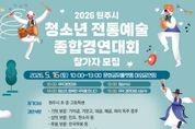 한방통신사 양호선기자 기자 | 사단법인 한국예술문화단체총연합회 원주지회는 오는 5월 개최되는 ‘제30회 원주 청소년 예술제’를 앞두고, 무대의 주인공이 될 지역 청소년 참가자를 모집한다. 올해로 30회를 맞이한 이번 예술제는 청소년들의 예술적 재능을 발굴하고 꿈을 응원하기 위해 마련된 행사다. 국악, 연예(가요·댄스), 연극, 음악, 문학 등 다양한 분야에서 경연과 공연이 펼쳐질 예정이다. 모집 부문은 ▲전통예술 종합경연대회 ▲청소년 트로트·가요·댄스 페스티벌 ▲원주청소년연극제 ▲학생음악콩쿠르 ▲치악산 전국 청소년 백일장 등 총 5개 분야다. 특히 이번 예술제는 경연뿐 아니라 국악 공연과 합주 페스티벌 등 다양한 프로그램이 함께 마련돼, 예술에 열정을 가진 청소년들이 실력을 발휘하고 서로 교류하는 뜻깊은 기회가 될 것으로 기대된다. 박혜순 원주시 문화예술과장은 “청소년들이 주인공이 되어 마음껏 즐길 수 있는 무대가 되길 기대한다”라며, “예술을 사랑하고 열정 가득한 원주 지역 청소년들의 많은 참여를 바란다”라고 말했다. [뉴스출처 : 강원도 원주시]