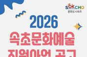 한방통신사 양호선기자 기자 | 속초문화관광재단이 지역 문화활동 활성화와 문화예술 진흥을 위해 지역 내에서 지속적인 문화예술활동이 가능하도록 지원하는 ‘2026 속초문화예술지원사업’을 추진한다. 2026 속초문화예술지원사업은 문화예술단체, 문화예술인, 생활예술, 찾아가는 문화활동 등 총 4개 분야로 구성된다. 문화예술단체와 문화예술인 분야는 전문 문화예술인과 단체를 지원하며, 생활예술 분야에서는 시민의 문화예술 활동을 돕는다. 문화예술 향유 기회가 상대적으로 적은 기관을 직접 방문하는 ‘찾아가는 문화활동’ 분야도 모집한다. 재단은 지난해에 이어 올해도 지원사업 참여 기회를 확대하기 위해 예비순위 제도를 운영한다. 심사에서 최대 예비 3순위까지 선정해 사업 포기 등으로 지원이 어려웠던 경우 후순위 단체(인)에게 지원할 수 있도록 한다는 취지다. 2026년도 공모 자격요건은 지난해와 동일하게 적용된다. 찾아가는 문화활동을 제외한 3개 사업은 공고일 기준 속초시에 소재한 문화예술단체 또는 생활예술단체가 신청할 수 있다. 문화예술인은 공고일 기준 1년 이상