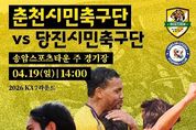 한방통신사 양호선기자 기자 | 춘천시민축구단이 오는 19일 홈경기 3연승에 도전한다. 춘천시민축구단은 19일 오후 2시 송암스포츠타운 주경기장에서 당진시민축구단을 상대로 2026 K3리그 홈경기를 치른다. 이번 경기는 홈 3연승 달성과 함께 리그 상위권 진입을 위한 중요한 분수령이 될 전망이다. 특히 이번 경기는 4월 20일 ‘장애인의 날’을 기념해 다양한 체험 프로그램이 함께 운영된다. 경기장 일대에서는 장애인체육 종목인 한궁, 슐런, 휠체어 체험 등이 마련돼 시민 누구나 참여할 수 있으며 에스코트 키즈 역시 명진학교 학생들이 함께해 의미를 더할 예정이다. 경기 당일에는 선수단 팬사인회를 비롯해 푸드트럭 운영, 선수 사생대회 등 다양한 참여형 이벤트도 함께 열려 경기장을 찾은 시민들에게 즐거움을 제공할 계획이다. 또한 최근 기온이 상승함에 따라 관람객 편의와 안전을 고려해 관람 구역을 기존 가변석이 아닌 그늘이 확보된 W석 중심으로 운영할 예정이다. 치어리더와 함께하는 응원전도 펼쳐져 현장 분위기를 더욱 뜨겁게 달굴 것으로 기대된다. 춘천시는