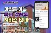 한방통신사 양호선기자 기자 | 홍천군립도서관은 2026년 2월부터 군민의 독서 정보 접근성을 높이기 위해 매주 1회 우수 도서를 선별해 요약본을 제공하는 ‘아침을 여는 독서 알림톡’ 서비스를 운영한다. ‘아침을 여는 독서 알림톡’은 홍천군립도서관 정회원 400명을 대상으로 매주 화요일에 운영하는 대면하지 않는 독서 지원 서비스다. 매주 베스트 셀러, 오래 사랑받는 도서, 신간 도서, 세계 흐름 도서 등으로 구성한 도서 6권의 요약본을 휴대전화 알림톡(카카오 알림톡)으로 제공한다. 바쁜 일상에서도 짧은 시간에 책의 핵심을 읽을 수 있도록 내용을 간추려 전달하는 것이 특징이다. 서비스 관련 자세한 내용은 홍천 군립도서관 누리집(연봉, 서석, 남면, 내면, 별빛나루, 홍천 어린이도서관)에서 확인할 수 있다. 기타 문의는 홍천 군립도서관으로 하면 된다. 이성희 교육체육과장은 “독서 알림톡 서비스가 홍천 군민이 일상에서 자연스럽게 책과 만나는 계기가 되길 바란다”라며, “앞으로도 생활 속 독서 문화 확산을 위해 다양한 독서 지원사업을 지속적으로 운영해 나가겠다”라고 말했다. [뉴