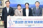 한방통신사 신유철기자 기자 | 지난 19일, BNK경남은행 사랑나눔재단(이사장 김태한)과 하나님의교회 세계복음선교협회(총회장 김주철목사)가 추석 명절을 맞아 어려운 이웃을 위한 기탁식을 진행하며 지역사회에 훈훈한 온기를 더했다. BNK경남은행 사랑나눔재단은 소외계층 지원을 위한 사회공헌활동의 일환으로 거창사랑상품권 1만 원권 1,000매를 기탁했으며, 이는 세대별 5만 원씩 총 200세대에 전달될 예정이다. 이번에 지원되는 거창사랑상품권은 관내 전통시장과 지역 상점에서 현금처럼 사용할 수 있어, 명절을 준비하는 취약계층 가정의 생활에 실질적인 도움이 되는 동시에 지역경제 활성화에도 기여할 것으로 기대된다. 재단은 2024년 김치 10kg과 거창사랑상품권 등 4회에 걸쳐 24,600천원 상당을, 2025년에는 식료품 꾸러미 100개와 선풍기 100대(총 7,838천원 상당)를 기탁하는 등 매해 명절과 연말마다 어려운 이웃을 위한 다양한 물품을 꾸준히 지원하며 이웃사랑을 실천 해오고 있다. 하나님의교회 세계복음선교협회는 추석 명절을 맞아 어려운 이웃에게 따뜻한 마음을 전하고자 식료품꾸러미 20상자를 기탁했다. 교회