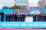한방통신사 신유철기자 기자 | 제주특별자치도의 재난 안전 컨트롤타워가 될 제주소방안전본부 신청사가 20일 착공됐다. 2027년 완공을 목표로 추진되는 이번 사업은 민선 8기 도정 공약인 ‘119종합 컨트롤타워 기능 고도화’를 실현하기 위한 핵심 프로젝트다. 신청사는 제주시 연동 324-37번지(현 제주도로관리사업소 부지)에 2027년까지 총 552억 원을 투입해 연면적 1만 544.86㎡, 지하 1층·지상 6층 규모로 조성될 예정이다. 현 청사는 1982년 여성회관으로 준공된 후 1992년 소방안전본부로 전환돼 사용해 왔다. 119종합상황실 공간 부족으로 1994년, 2003년, 2009년 세 차례 증축했으나 준공 42년이 지나면서 노후가 심화되고 공간도 협소해졌다. 급변하는 재난 환경에 효과적으로 대응하기 위해 소방조직 확충과 기능 고도화를 갖춘 신청사 건립이 추진됐다. 제주도 소방안전본부는 20일 신축 부지에서 제주소방안전본부 청사 신축 기공식을 개최했다. 기공식에는 오영훈 지사, 이상봉 제주도의회 의장을 비롯해 소방공무원, 의용소방대원 등 300여 명이 참석했다. 기공