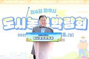 한방통신사 신유철기자 기자 | 파주시는 운정건강공원에서 지난 26일부터 3일간 ‘젊은 농부와 도시가 만나다’를 주제로 열린 ‘제4회 파주시도시농업박람회’를 성황리에 마치고, 도시민과 농촌이 하나 되는 자리를 통해 파주시 도시농업의 미래 가능성을 제시했다고 밝혔다. 전시공간과 체험공간을 운영, 도심에서는 보기 어려운 목화, 대추나무, 레몬, 까치콩, 달가지 등 여러 가지 농작물 전시와 도시농업 작품 전시를 통해 도시민이 농업에 쉽게 접근하고 이해할 수 있도록 꾸몄다. 삼색경단꼬치·바람떡 만들기, 다육정원·관엽정원 만들기, 전통 다식 등 다양한 체험 프로그램과 거리공연(버스킹), 동극, 비눗방울 공연 등의 가족단위 공연 프로그램은 방문객들의 뜨거운 반응을 이끌어 냈다. 또한 시에서 배출한 도시농업관리사들의 숨은 기량을 뽐내는 ‘제2회 도시농업관리사 작품 전시전’과 관내 4개 중고등학교 학생들이 직접 참여한 ‘청소년 도시농업 경연대회’, 파주시 어린이집에서 직접 재배한 ‘벼 화분 전시’는 관람객들의 눈을 즐겁게 했다. 박람회는 잔디광장 텃밭 정원에 심었던 여러 가지 쌈 채소와 도시농업관리사 전시 작품들을 나누고 기부