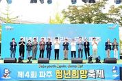 한방통신사 신유철기자 기자 | 파주시는 지난 27일 금릉역 앞 중앙광장에서 열린 ‘제4회 파주 청년희망축제’가 시민들의 뜨거운 호응 속에 성공적으로 마무리됐다고 밝혔다. 올해 축제는 ‘파주청년, 다시 도약하다!(Paju Youth Again, Jump Up!)’을 주제로, 도약하는 청년세대의 열정과 활력을 시민과 함께 나누는 장으로 마련됐다. 이번 축제의 백미는 개막식과 함께 진행된 ‘파주 청년 비전선포식’이었다. 청년정책협의체 공동위원장은 무대에서 ‘청년이 뿌리내리는 도시, 파주’라는 비전을 선포하며, 청년과 지역사회가 함께 나아갈 미래의 방향을 제시했다. 특히 청년들이 직접 낭독한 선언문과 청년친화도시 지정을 위한 기념행사는 파주시의 확고한 의지를 대외적으로 알리는 계기가 됐다. 오후 2시부터 8시까지 진행된 이번 축제는 ▲사전공연 ▲청년 골든벨 ▲청년 가요제 ▲청년공간 특별강좌 ▲프리미엄 수제 맥주 시음 ▲청년창업가 플리마켓 ▲무료 체험공간 ▲대형 ‘파랑’ 포토존 등 다채로운 프로그램으로 꾸려졌다. 가요제 무대에서는 청년들의 끼와 열정이 빛났으며, 청년창업가 판매공간 및 수제 맥주 시음 공간은