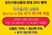 한방통신사 신다은기자 기자 | “희망이 되는 소비, 함께 성장하는 경제”란 비전 아래 10개 부처와 3만 개 유통사가 참여하는 대규모 할인 축제인 ‘코리아 그랜드 페스티벌’이 개최된다. 지역상품권뿐만 아니라 온누리상품권, 농․축․수산물, 가전제품, 숙박․관광, 면세점 등 다양한 분야에서 가격 할인 및 쿠폰 발행 혜택을 제공한다. 기간은 오는 29일부터 11월 9일로 12일간 진행되며, 이에 지역경제 활성화를 위해 강진군도 참여한다. 강진군은 모바일(착) 강진사랑상품권의 할인율을 5% 인상해 행사기간에 총 20%(선할인 10% + 캐시백 5% + 추가 캐시백 5%)의 혜택을 지원한다. 할인율 인상에 대한 비용은 전액 국비로 지원되며, 지원되는 국비는 총 1억 2천만 원으로 예산 소진 시 조기 종료된다. 관내 모바일(착) 상품권은 음식점, 전통시장, 주유소, 미용실, 병원, 마트 등 지역 내 1,600여 개의 가맹점에서 사용할 수 있다. 자세한 가맹점 안내는 강진군 홈페이지 및 지역상품권 chak(앱) ‘가맹점 찾기’에서 확인할 수 있다. 군 관계자는 “지류(종이)