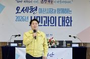 한방통신사 신태공 기자 | 아산시는 22일 온양농협 회의실에서 ‘2026 시민과의 대화’를 열고, 지역 여건과 주요 현안에 대한 주민 의견을 청취했다. 이날 열린 ‘온양4동 시민과의 대화’는 아산시 17개 읍면동 순방 일정의 하나로, 오세현 아산시장을 비롯해 홍성표 아산시의회 의장, 이기애·명노봉·신미진 시의원, 박정식·안장헌 충남도의원, 온양4동 기관·단체장과 주민 등 100여 명이 참석한 가운데 진행됐다. 오 시장은 간담회에 앞서 “온양4동은 농촌과 도시, 산업단지가 어우러진 전형적인 도농복합지역으로, 아산시의 구조와 과제가 집약된 곳”이라며 “신정호와 아산환경과학공원, 아산그린타워 등 시를 대표하는 관광자원에 더해 최근 방축지구 도시개발 사업이 재추진되면서 지역 여건 변화의 계기를 맞고 있다”고 말했다. 이어 “변화의 과정에서 주민들이 체감하는 불편과 다양한 의견이 있을 것으로 생각한다”며 “온양4동 현안은 물론, 아산시 전체 발전을 위한 의견까지 자유롭게 제시해 달라”고 밝혔다. 이날 주민들은 △혜미청과 사거리~옥정사거리 방향 우회도로 설치 △실옥동 도로 확장 △배미동 일원 체육공원 조성 △